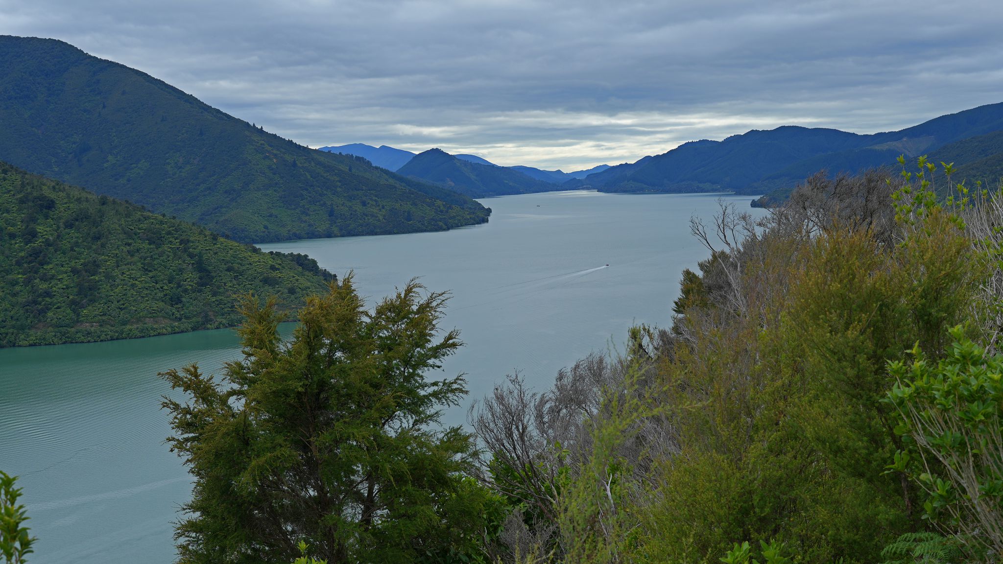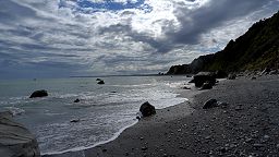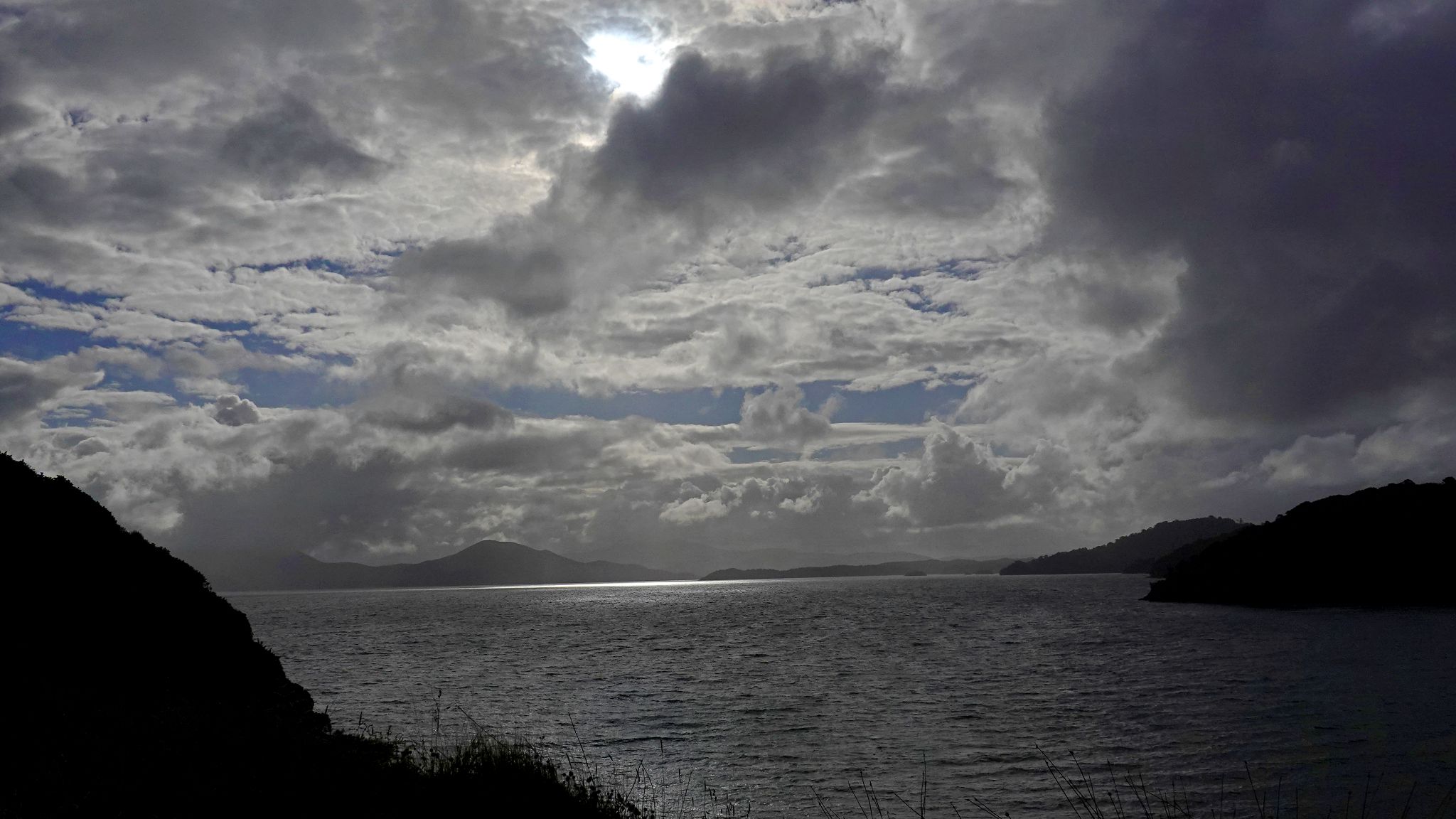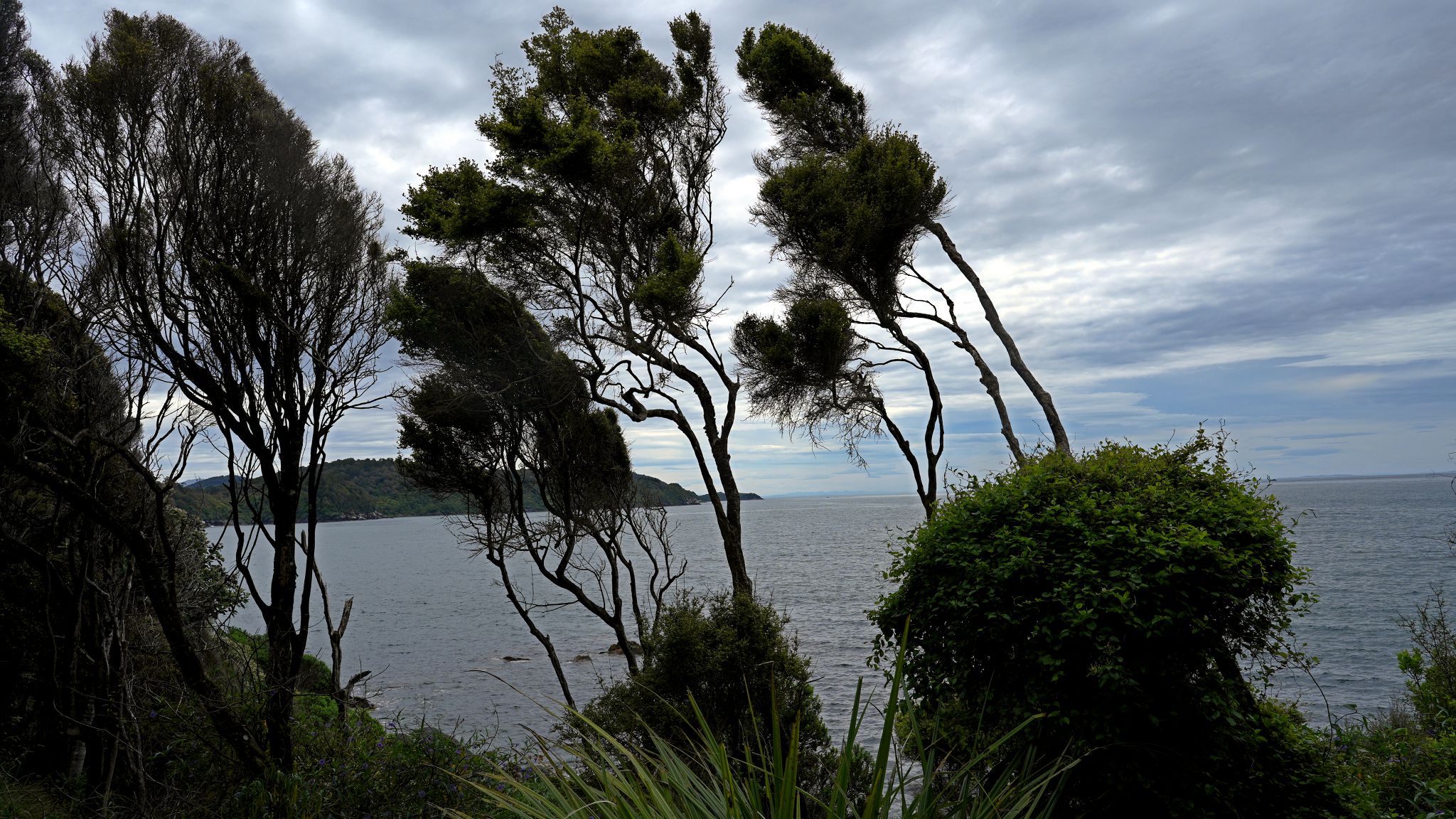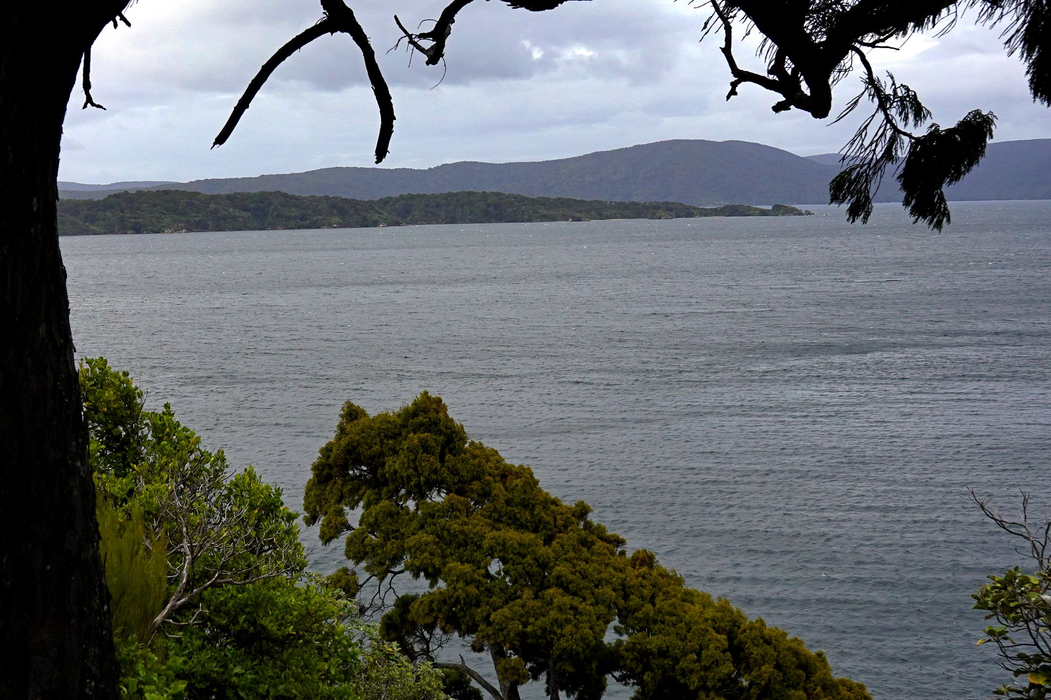 Punga Cove: gloomy and windy. QC Track: sunny and windy.