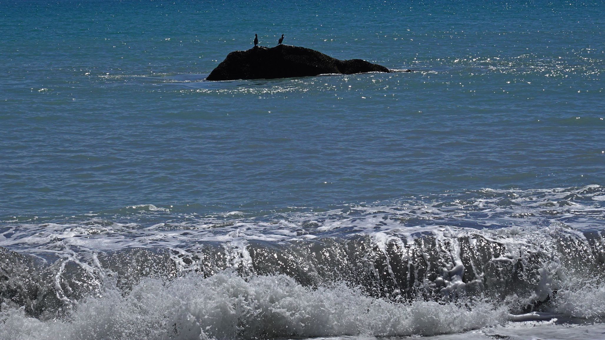 Coastal walk and pack route to Three Mile Lagoon: on the coastal walk; shags; same shags; Three Mile Lagoon.