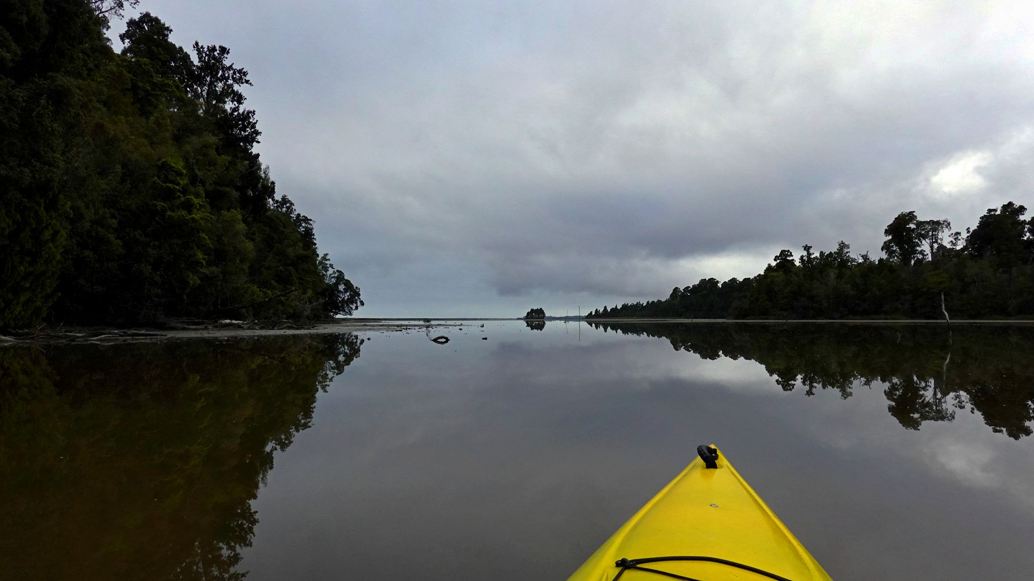 Lagoon: sunrise; from kayak; from kayak; from kayak on gloomy day.