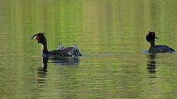 1. Puteketeke. 2. Puteketeke with chicks on back.