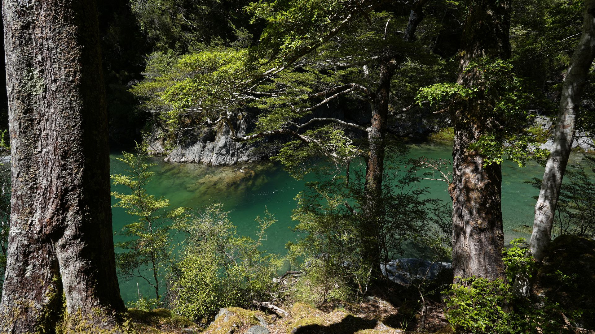 1. From the bush, Lake Rere looks green. 2. Lake Rere. 3. Greenstone track. 4. Green pools in the Greenstone river.