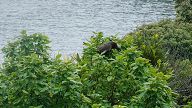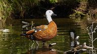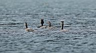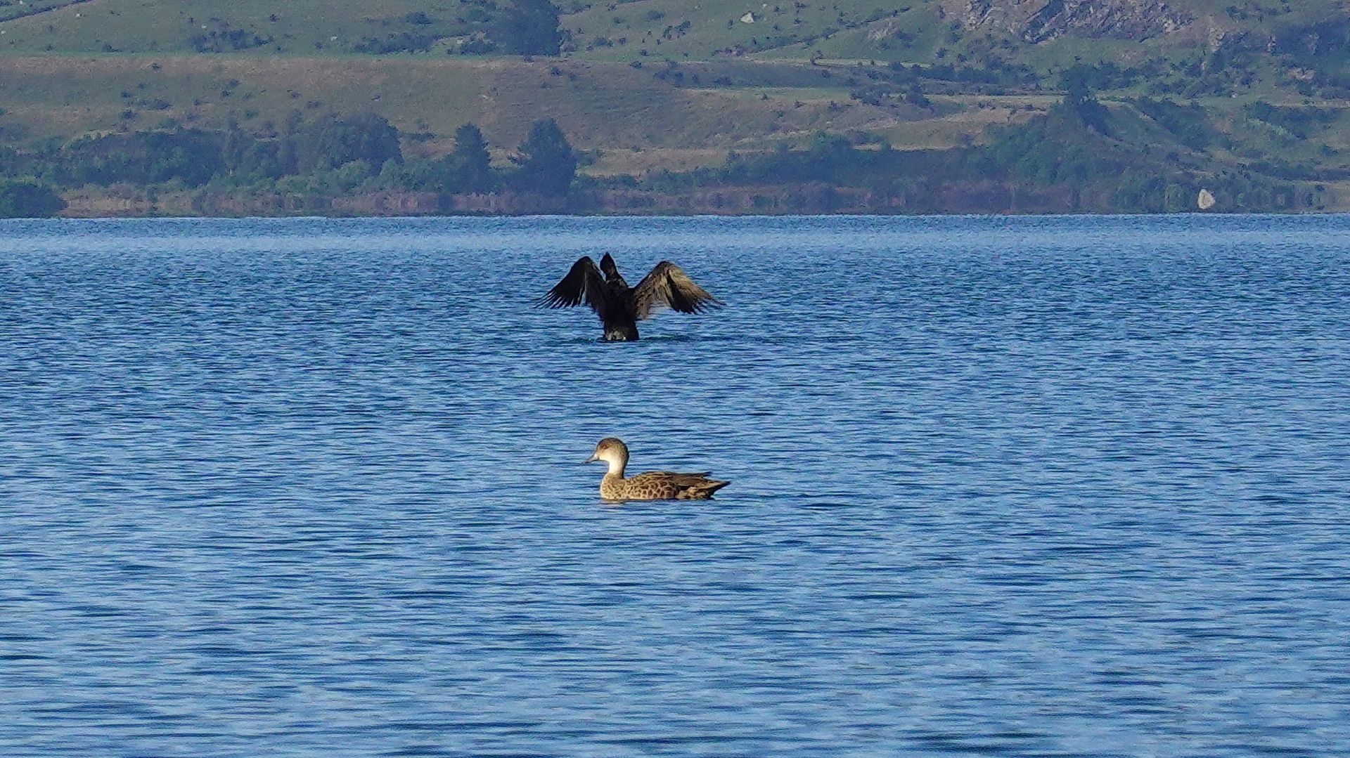 1. Shelduck. 2. Puteketeke 3. Black-backed gull. 4. Shag and grey duck.