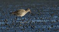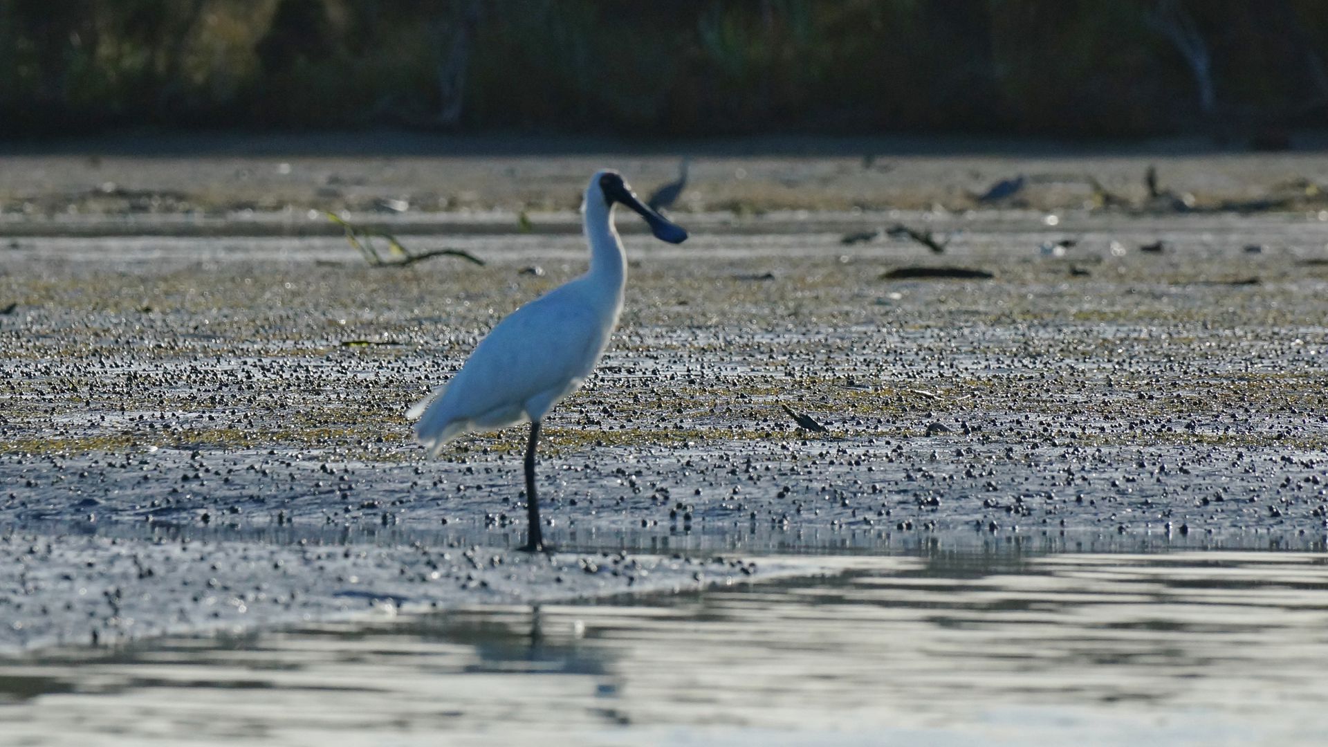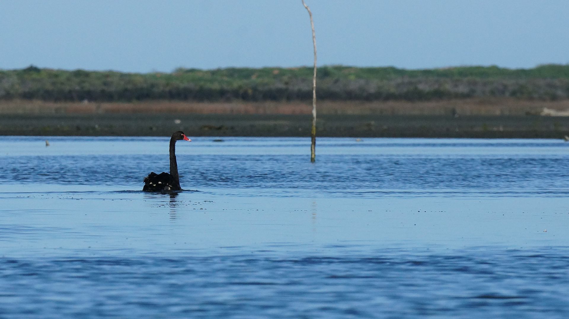 1,2 Godwit. 3. Pied oystercatcher. 4. Young black-billed gull. 5. Spoonbill (rare). 6. Black swan.