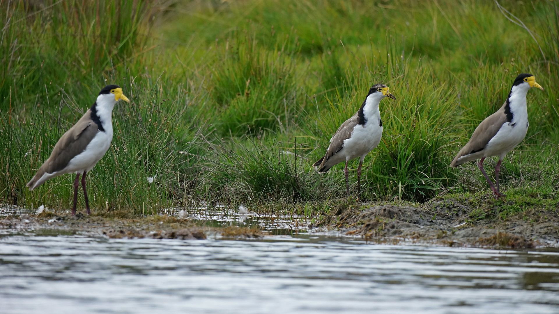 1. Juvenile puteketeke (grebe) and black swan. 2. Black swan. 3. Little shag (Kawau Paka). 4. Proud parent (puteketeke) with three juveniles. 5. Spur-winged plover. 6. Puteketeke