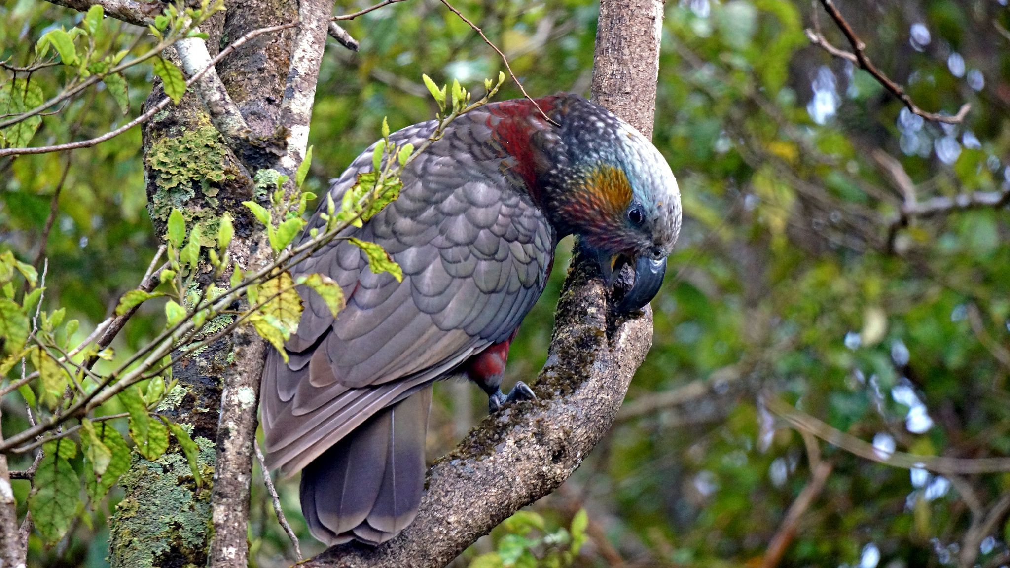 Kaka: checked out the grill; got bored; went back to pulling grubs out of trees.