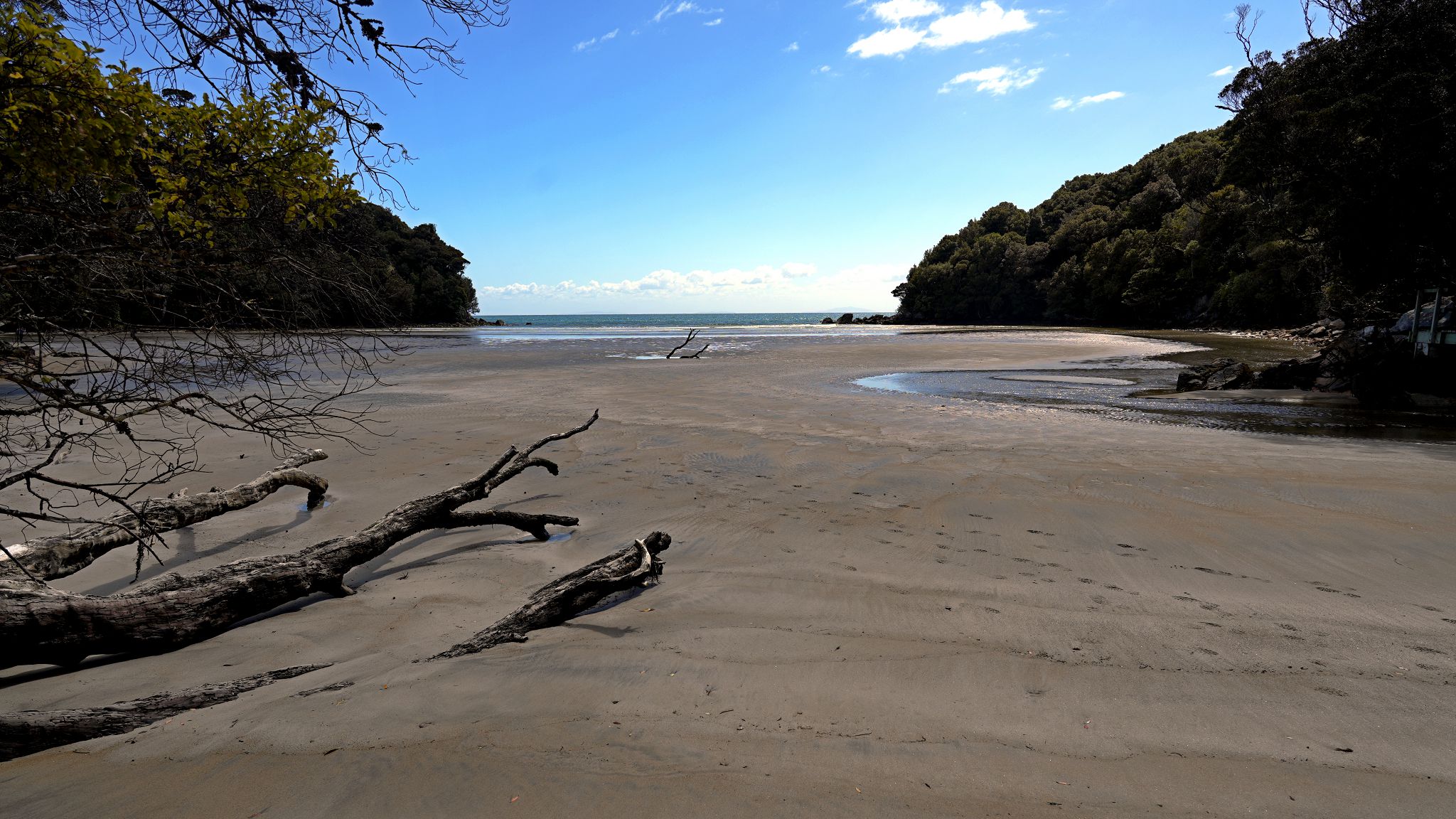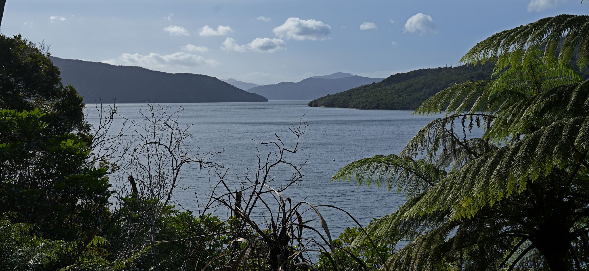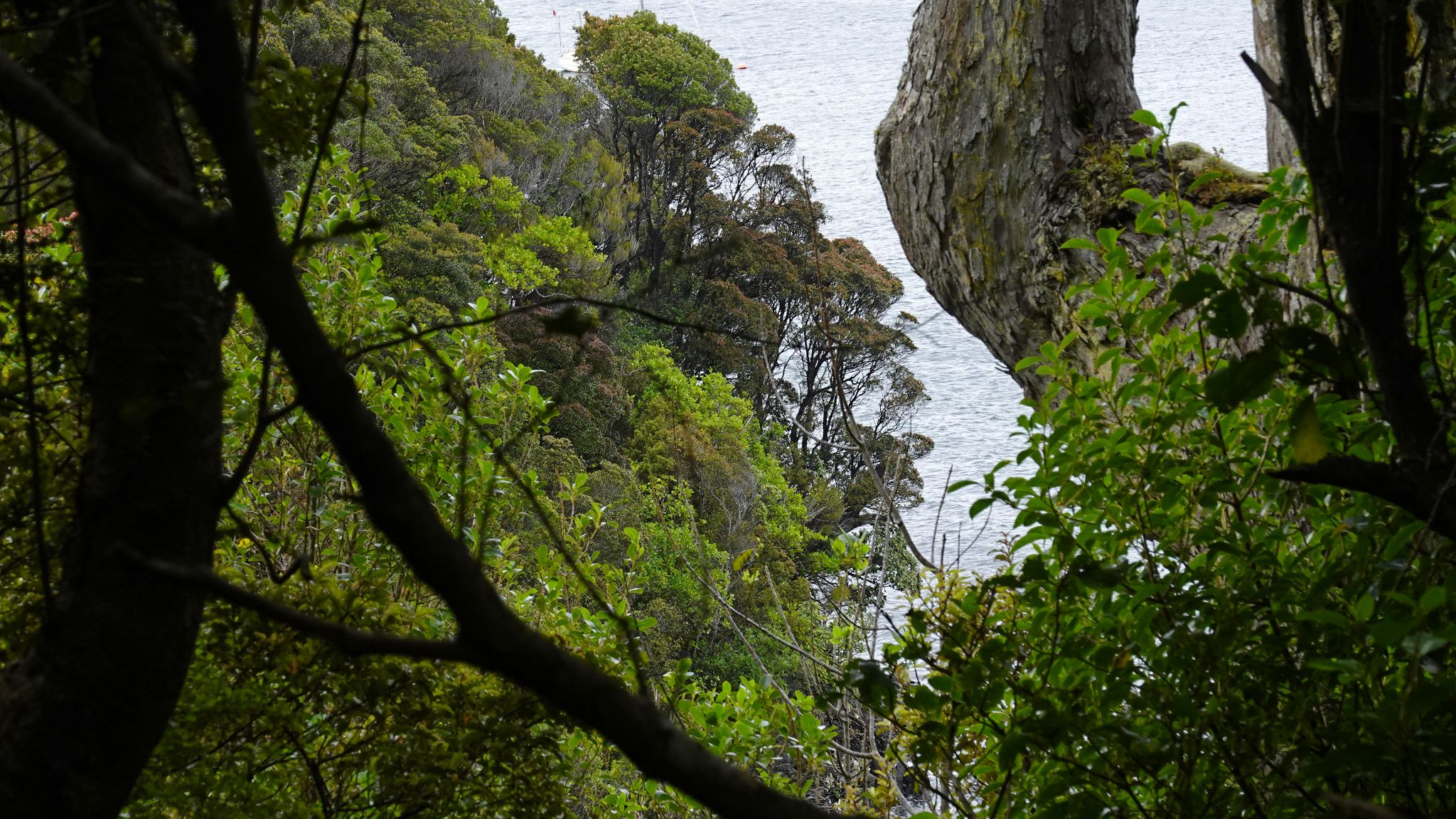 Punga Cove: gloomy and windy. QC Track: sunny and windy.
