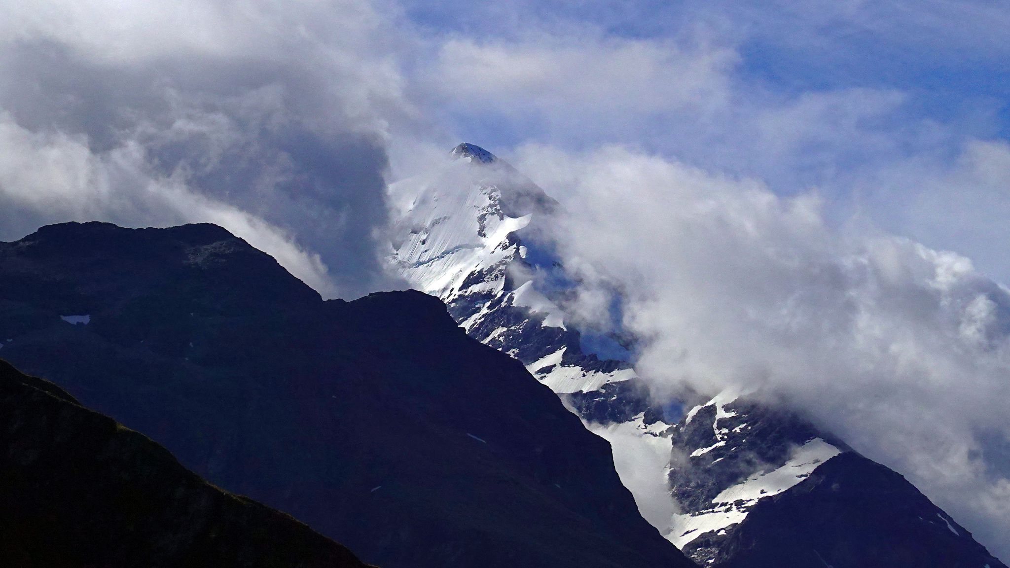 Down valley, Mount Earnslaw, up valley.