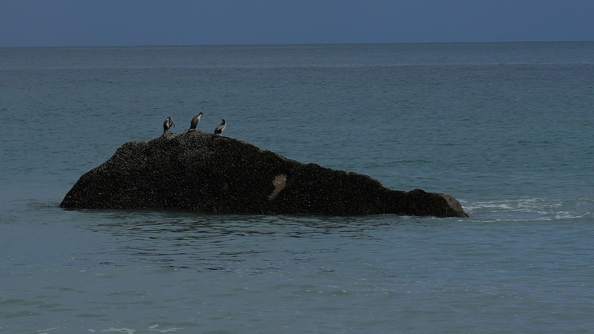 Coastal walk and pack route to Three Mile Lagoon: on the coastal walk; shags; same shags; Three Mile Lagoon.