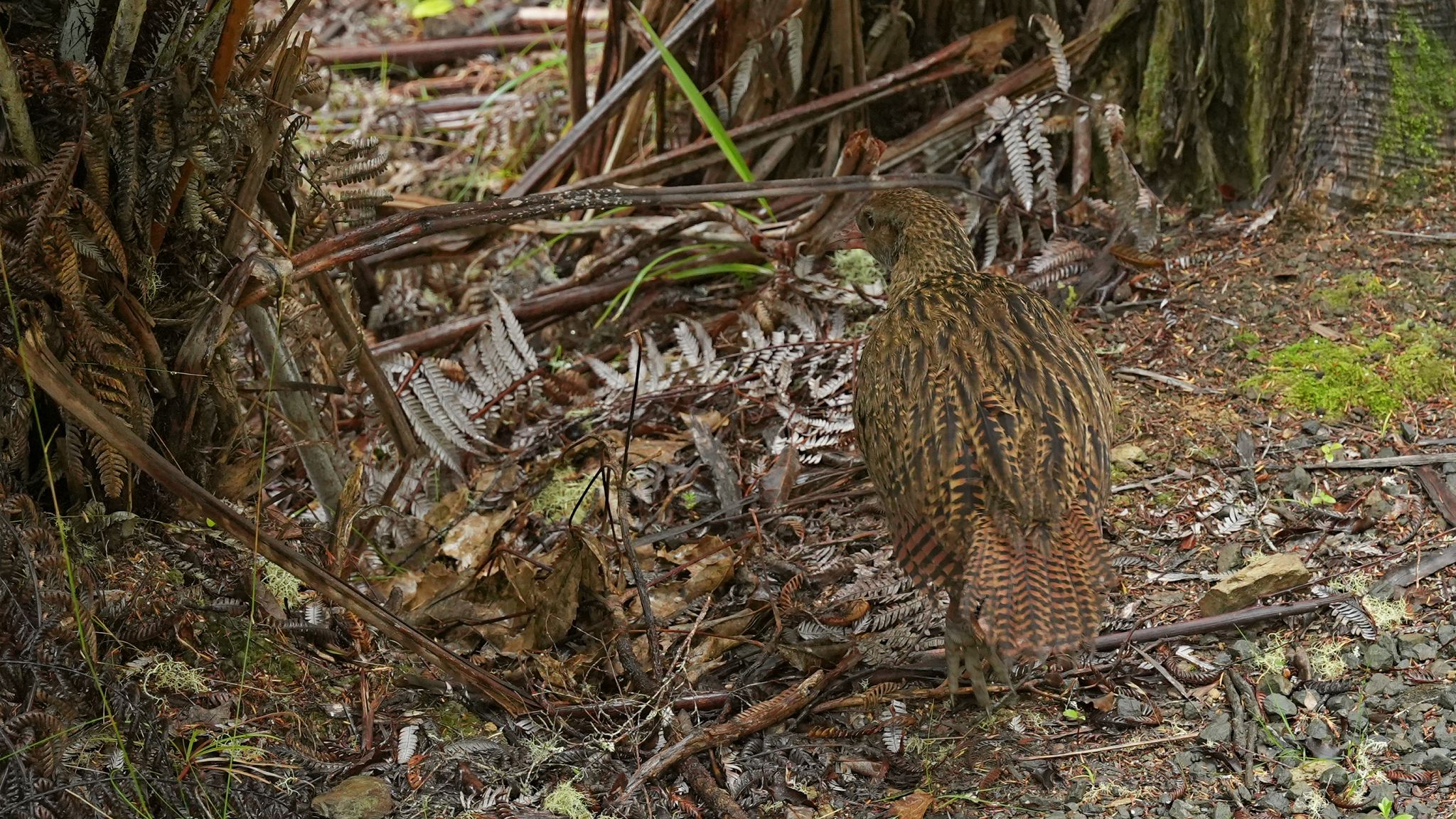 Weka on the Cullen Point Coastal track; Pelorous Sound; Kaikoura -- wet and very windy (photos taken on day winds reached 290 kph on east coast).